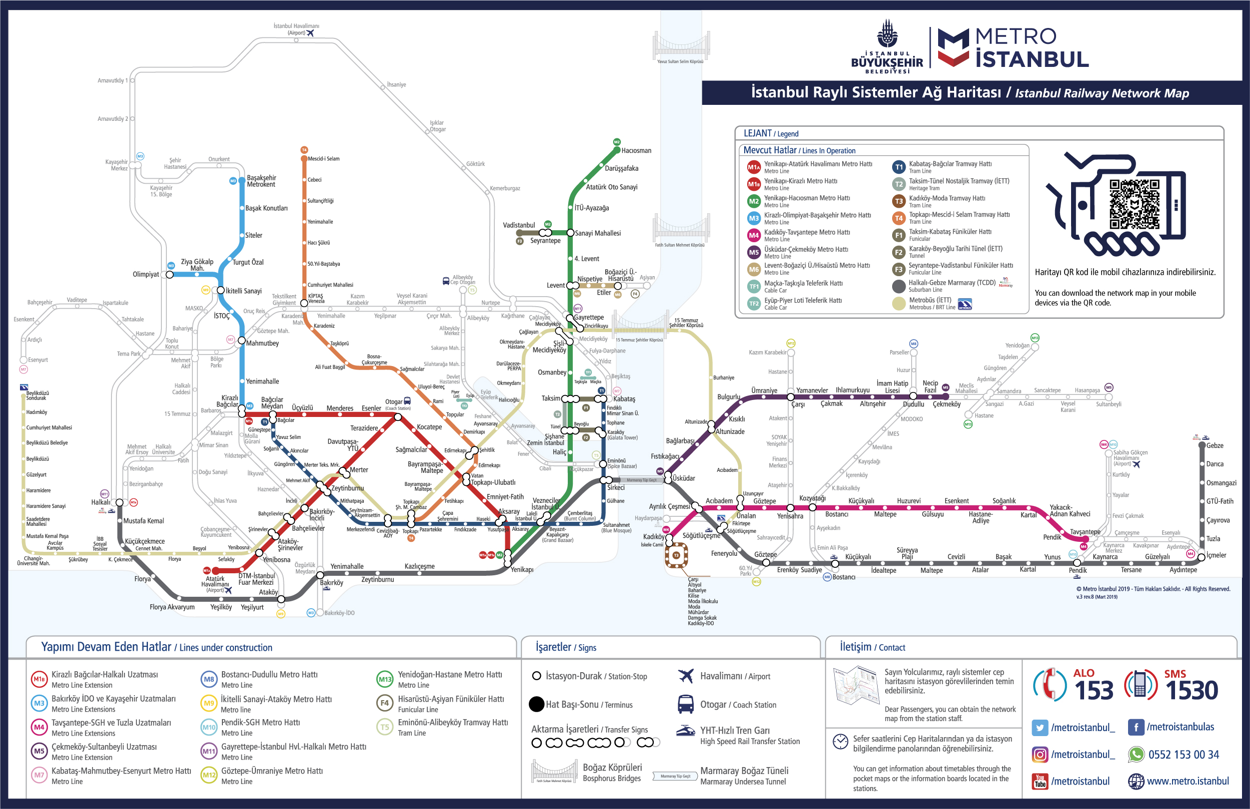 Türkiye’nin en uzun raylı sistem ağına sahip İstanbul’da 77 km banliyö hattı (Marmaray), 112 km metro hattı, 38 km tramvay hattı ve 1 km füniküler hattı bulunuyor.