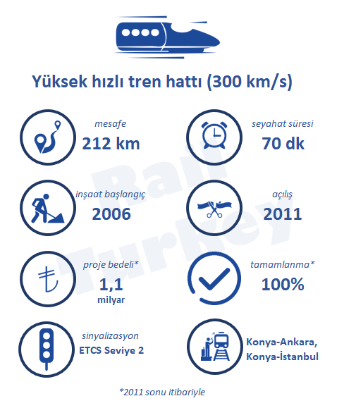 Türkiye’deki en gelişmiş sinyalizasyon sistemi ETCS Seviye 2 ile donatılmış Polatlı-Konya hatında trenler 250 km/s hızla ilerliyorlar. Bu sayede trenler, Polatlı-Konya arasını 70 dakikada tamamlıyorlar. Konya-Ankara arası seyahat süresi 1 saat 45 dk, Konya-İstanbul (Söğütlüçeşme) ise 5 saat.