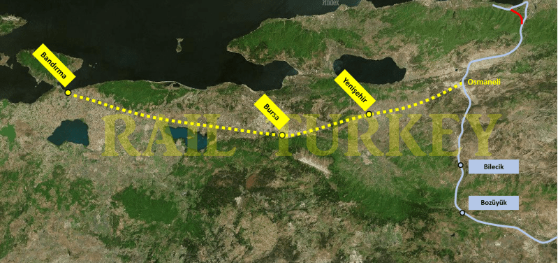 Osmaneli’nde İstanbul-Ankara YHT hattından ayrılan 201 km uzunluğundaki yüksek standartlı demiryolu, Yenişehir üzerinden Bursa’ya ve oradan Bandırma’ya kadar uzanıyor. Hat ile Bursa ilk, Bandırma ise ikinci kez demiryolu ile buluşmuş olacak.