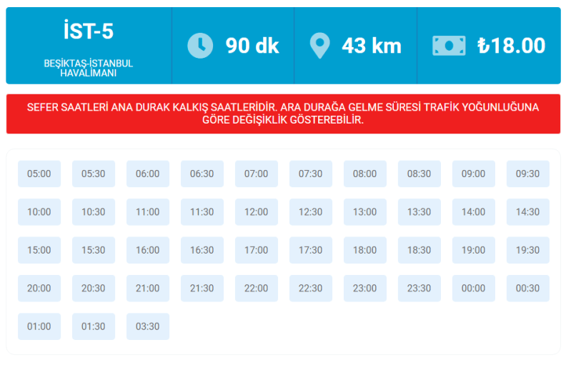 Taksim havalimanı servis saatleri aşağıdaki gibi (diğer duraklar ve havalimanından kalkış saatleri yayınlanmıyor, trafiğe bağlı değişiklik gösterebiliyor):