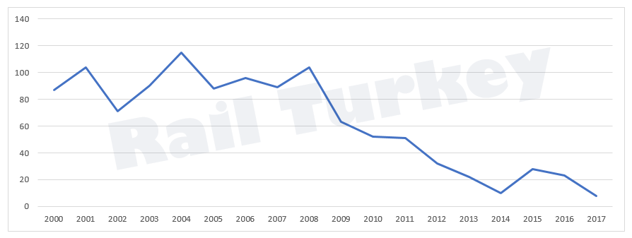 Demiryolunda en acı sonuçlar bu tür kazalarda meydana geliyor. Hala hafızalarımızdan silinmeyen Çorlu ve Pamukova kazaları derayman kazaları. İşte 2000 yılından bu yana demiryollarımızdaki deraymanların grafiği:
