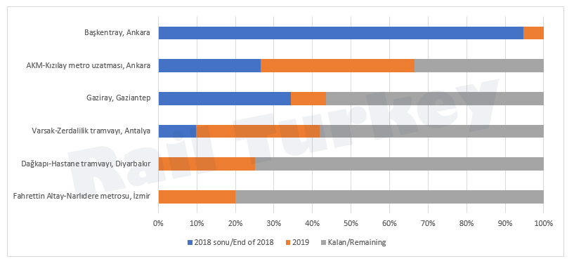 İstanbul dışında 5 ilimizde metro/tramvay çalışmaları devam ediyor, ya da bu sene başlayacak. İşte diğer illerimizdeki raylı sistem projelerinin bugüne kadar yapılan yatırım miktarı, 2019 bütçesi ve kalan miktar:
