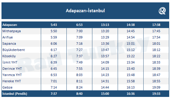 Yıllar boyunca Türkiye’nin en yoğun kullanılan bölgesel trenlerinden biri olarak İstanbul ile Adapazarı arasında hizmet veren Ada Ekspresi yeniden Adapazarı Garı’na kadar hizmet vermeye başladı. Ada Ekspresi’nin yeni sefer saatleri şöyle: