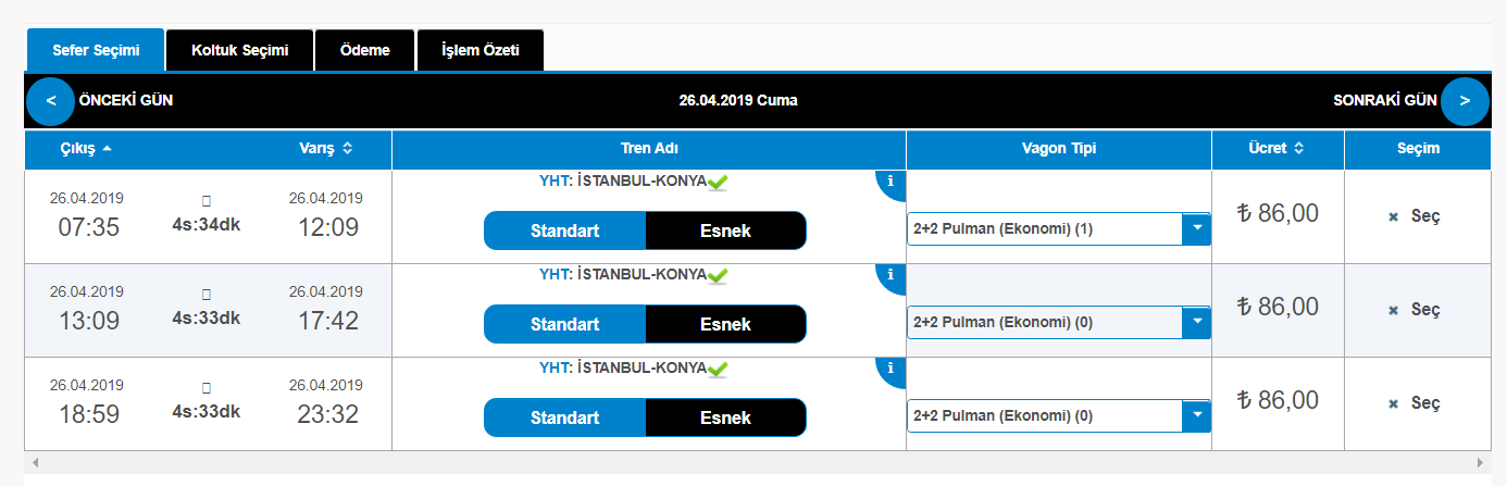İstanbul-Konya trenlerinde de durum farklı değil:
