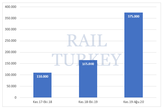 İlk yılında 110 bin ton yükün taşındığı hat, ilk yıl %50 büyümüştü. Bu sene, henüz Eylül-Ekim ayı sonuçları dahil edilmemiş rakamlarla %127 gibi rekor bir büyümeye imza attı. Üç yıllık taşınan yük miktarları şöyle: