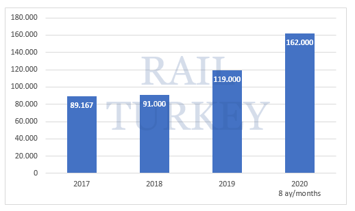 2020 yılında, ilk iki ayında ağırlıklı olarak feribotun, Nisan ayından itibaren ise sadece Marmaray’ın kullanıldığı iki kıta arası yük taşımacılığında, Ağustos sonu itibariyle 162 bin tona ulaşıldı. Taşımalar aynı hızla giderse, sene sonunda Marmaray’dan geçen yükün 240 bin tonu bulması kuvvetle muhtemel. Bu da 2019’un iki, 2018’in ise yaklaşık üç katı yük demek.