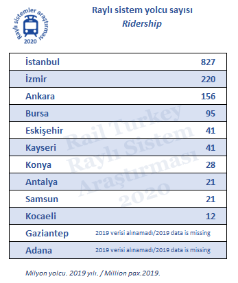 Yeni bir hat olmamasına rağmen, raylı sistemlerle taşınan yolcu sayısı 2019’da 130 milyon artış gösterdi. Bu artışta yeni açılan hatların oturmasının payı var. Bir diğer önemli etken de, belediyelerin raylı sistemleri toplu taşımanın omurgası haline getirmesi ve otobüsleri uzun güzergahlar yerine raylı sistemlerle entegre kısa güzergahlara yönlendirmesi.