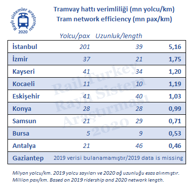 Verimlilikte ikinci sırada İzmir’in çiçeği burnunda iki tramvayı var. Yeni olmalarına rağmen bir senede 37 milyon yolcu taşıdılar. Kayseri ve Kocaeli’nin de İzmir’in ardından geldiklerini belirtelim.