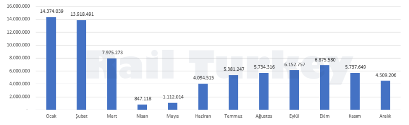 Covid-19 salgınının gelişimi ve buna karşı alınan önlemlerin yolcu sayısına direkt etkisi, İstanbul’un en çok kullanılan metro hattı olan M2’nin aylık gelişiminde izlenebiliyor. Mart ayı içinde Türkiye’ye ilk vakalar ilan edilmiş, Nisan ayı başında kısıtlamalar devreye alınmış, Mayıs sonunda normalleşme sürecine girilmiş, Kasım ayında yeniden kısıtlamalar ilan edilmiş, Aralık başında önlemler sıklaştırılmıştı.