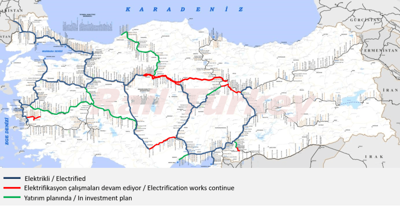 TCDD, tüm demiryolu hatlarının elektrifikasyonunu hedefliyor. Türkiye’de 2020 sonu itibariyle trafiğe açık demiryolu hattı uzunluğu 12803 km. Bunun %45’i, yani 5763 km’si elektrikli. Bunun 1213 km’si YHT hatları, 4540 km’si ise yük ve yolcu trenlerinin kullandığı konvansiyonel hatlar.