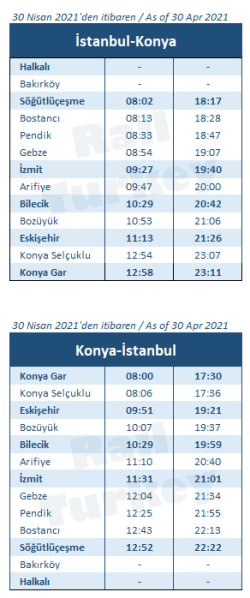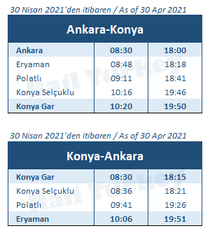 İstanbul-Konya ve Ankara-Konya hatlarında karşılıklı ikişer sefer yapılmaya devam edilecek.