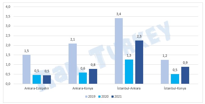 Pandemi, hızlı trenlerin hızlı büyümeye hazırlandığı bir döneme denk geldi. 12 adet yeni YHT setinin filoyu girmesiyle, 19 olan YHT seti sayısı, 2020’de 26, 2021’de 31’e çıktı. Ancak pek çok seferinde tüm koltukların satıldığı, yeni setlerle rekor yolcu sayısına ulaşması beklenen hızlı trenler de pandemiden etkilendi. YHTler, en erken yeniden başlatılan trenler olsa da, sınırlı sayıda sefer, %50 koltukların boş bırakılması gibi uygulamalar yolcu sayısında düşüşe yol açtı. Yine de, özellikle İstanbul hatları pandemiden en az etkilenen ve en hızlı toparlanan YHT hatları oldu.