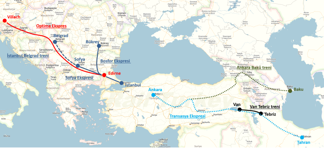Edirne ile Villach arasında hizmet veren ve yolcuların araçlarını da taşıyabildiği Optima Ekspres kış ayları hariç hizmet veriyor.